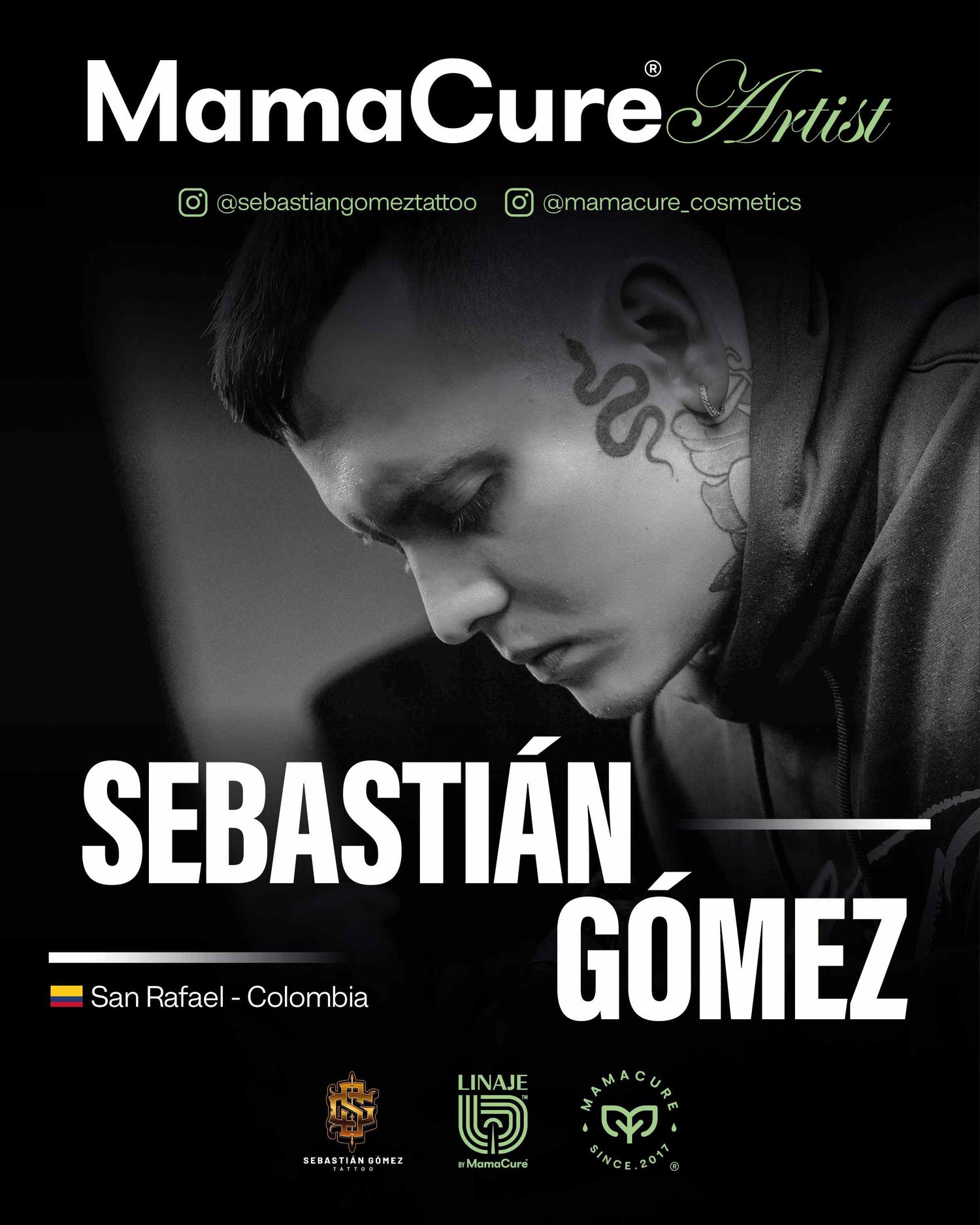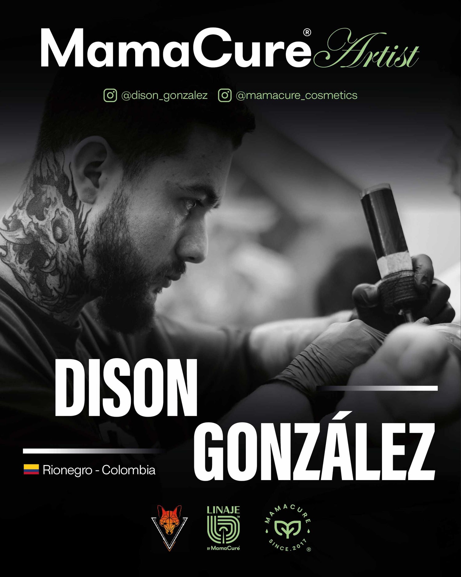 Fundador de Otzi Tattoo Collective en el Oriente antioqueño, y con 10 años de experiencia en el tatuaje, se especializa en Realismo y Surrealismo libre en Sombras y Grises. Su alto nivel lo ha llevado a confiar en MamaCure como parte fundamental de su proceso.